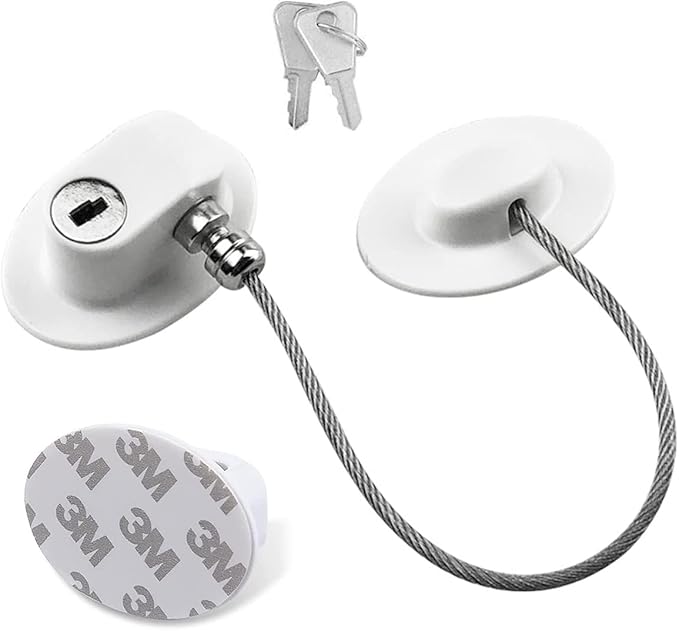 قفل باب قوي متعدد الوظائف، قفل أمان للأطفال مع مفاتيح بدون مسامير أو ثقوب، أقفال دواليب نوافذ لاصقة قوية لأقفال الأطفال ( لون أبيض )