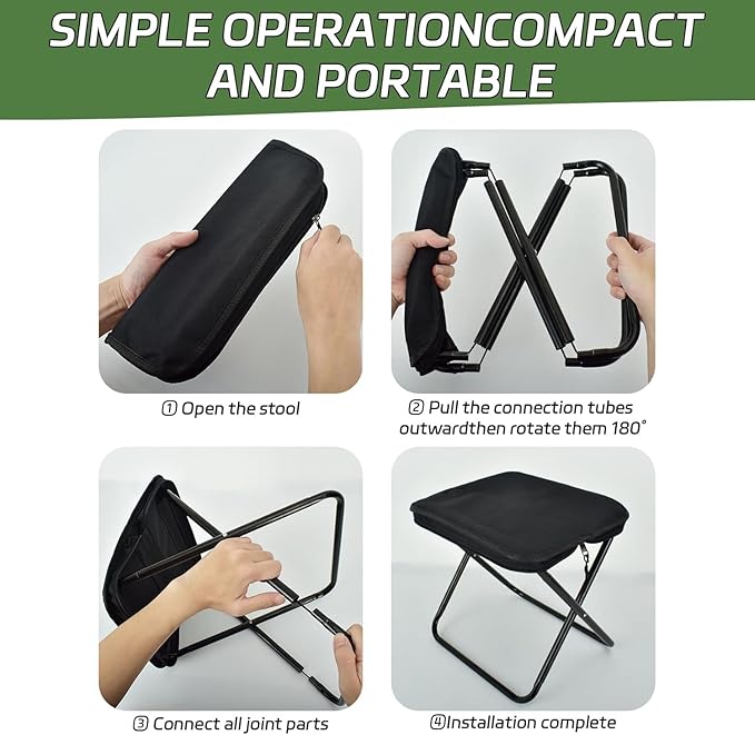 كرسي محمول قابل للطي وخفيف الوزن وصغير الحجم باطار معدني قوي وتصميم سهل الحمل لصيد الاسماك والتخييم والمشي لمسافات طويلة والسفر والانتظار والاستخدام