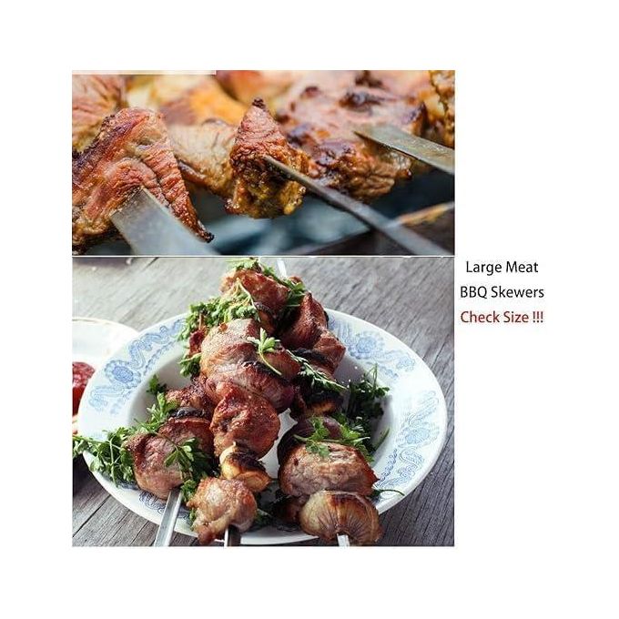مجموعة من 6 أسياخ كباب معدنية مسطحة طولها 44 سم من الفولاذ المقاوم للصدأ للشواء والشيش والشوي، مجموعة أسياخ عريضة قابلة لإعادة الاستخدام ومخصصة للحوم والخضروات والشوي والطهي في الهواء الطلق