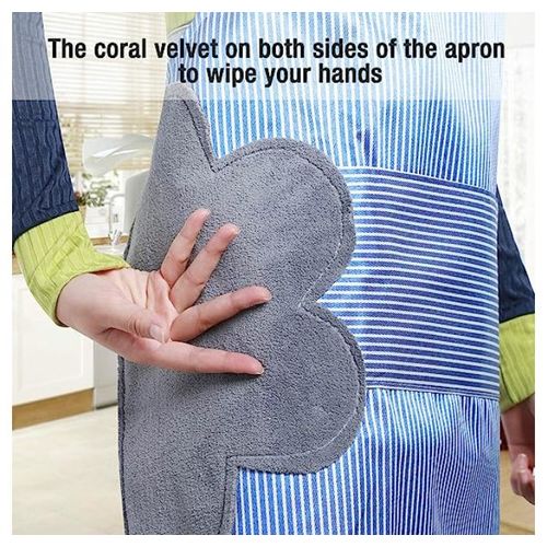 مريلة مطبخ ذات ياقة قابلة للتعديل مع جيوب وفوط قطيفة مدمجة لمسح اليد، تصميم متين مقاوم للماء بتصميم كوري مخطط (لون ازرق)