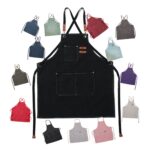 مريلة مطبخ شديدة التحمل بجيوب واسعة مصنوعة من قماش مقاوم للماء والحرارة، تصميم خلفي متقاطع قابل للتعديل للاستخدام في الطهي والمطبخ وصالونات الحلاقة والمطاعم للرجال والنساء