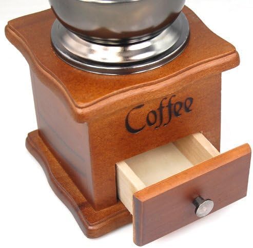 مطحنة حبوب القهوة اليدوية ذات ذراع تدوير كلاسيكي بنمط خشبي عتيق مع درج للكاكاو والتوابل والاعشاب والفاصوليا وديكور المطبخ، اداة طحن تقليدية بنمط خشبي كلاسيكي