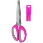 مقص تقطيع متعدد الاغراض مع 5 شفرات من الستانلس ستيل ومشط تنظيف (فوشيا)