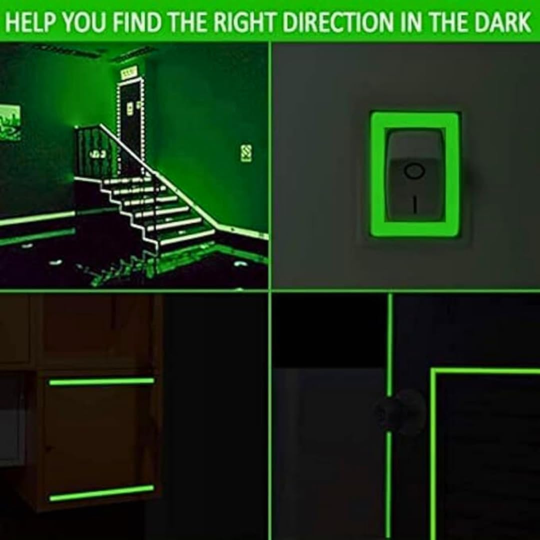ملصق تحذيري مضيء يتوهج في الظلام مقاوم للماء لإضاءة السلالم، مستلزمات ديكور المسرح (لون أخضر فاتح)، مقاس 5 متر × 2 سم، لفة واحدة