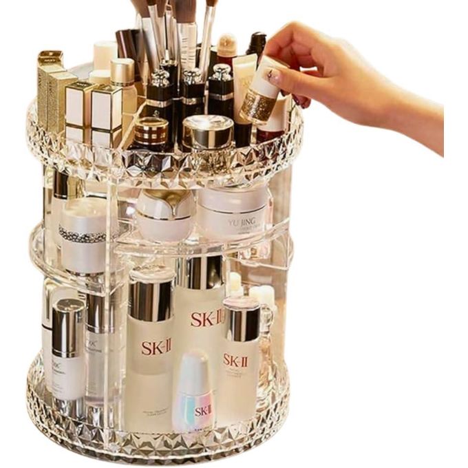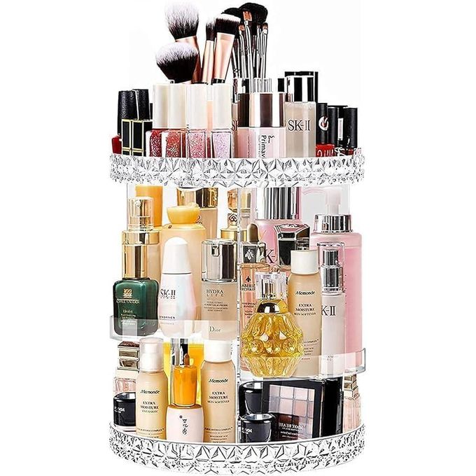منظم مكياج دوار بزاوية 360° مع 6 طبقات قابلة للتعديل – صندوق تخزين مستحضرات تجميل بسعة كبيرة للعناية بالبشرة، المجوهرات، أحمر الشفاه، وفرش المكياج
