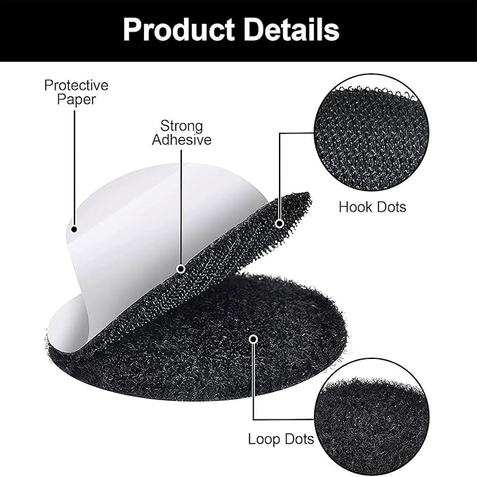 وسادات لاصقة دائرية مزدوجة الجوانب بشريط فيلكرو، قطر 5 سم مجموعة من 20 وسادة، مثبتات قوية ذاتية اللصق للمنزل والمكتب والصناعات اليدوية، قابلة لإعادة الاستخدام وسهلة الاستخدام
